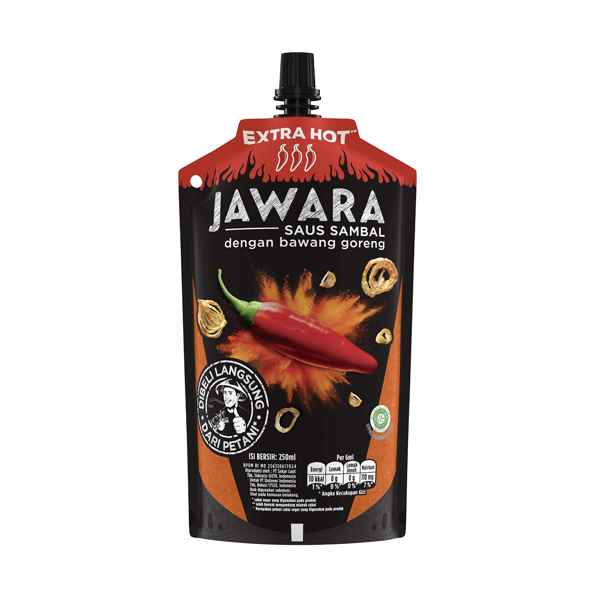 Jawara Saus Extra Hot Pouch 250 Ml Hadir Dengan Kombinasi Yang Unik Antara Cabai Segar Dan Bawang Goreng Asli. Terbuat Dari Cabai Pilihan Sehingga Kualitasnya Sudah Tidak Diragukan Lagi. Memberikan Cita Rasa Pedas Dan Gurih Yang Lebih Lezat Dan Mantap Dari Yang Lain. Pedasnya Yang Gurih, Akan Bikin Nagih Untuk Disantap Dengan Masakan Anda Dirumah.