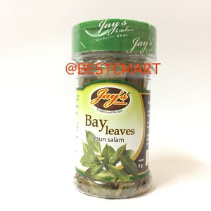 JAY'S BAY LEAVES (DAUN SALAM) Produk ini dapat digunakan untuk menambah cita rasa dan aroma pada saus pasta- semur- dan segala jenis masakan. Campurkan pada saus spaghetti pada saat memasak. Tambahkan pada sup- semur- kaldu- dan saus bistik. Terbuat dari daun salam pilihan dan diproduksi dengan mesin modern- tanpa pengawet. Halal MUI.