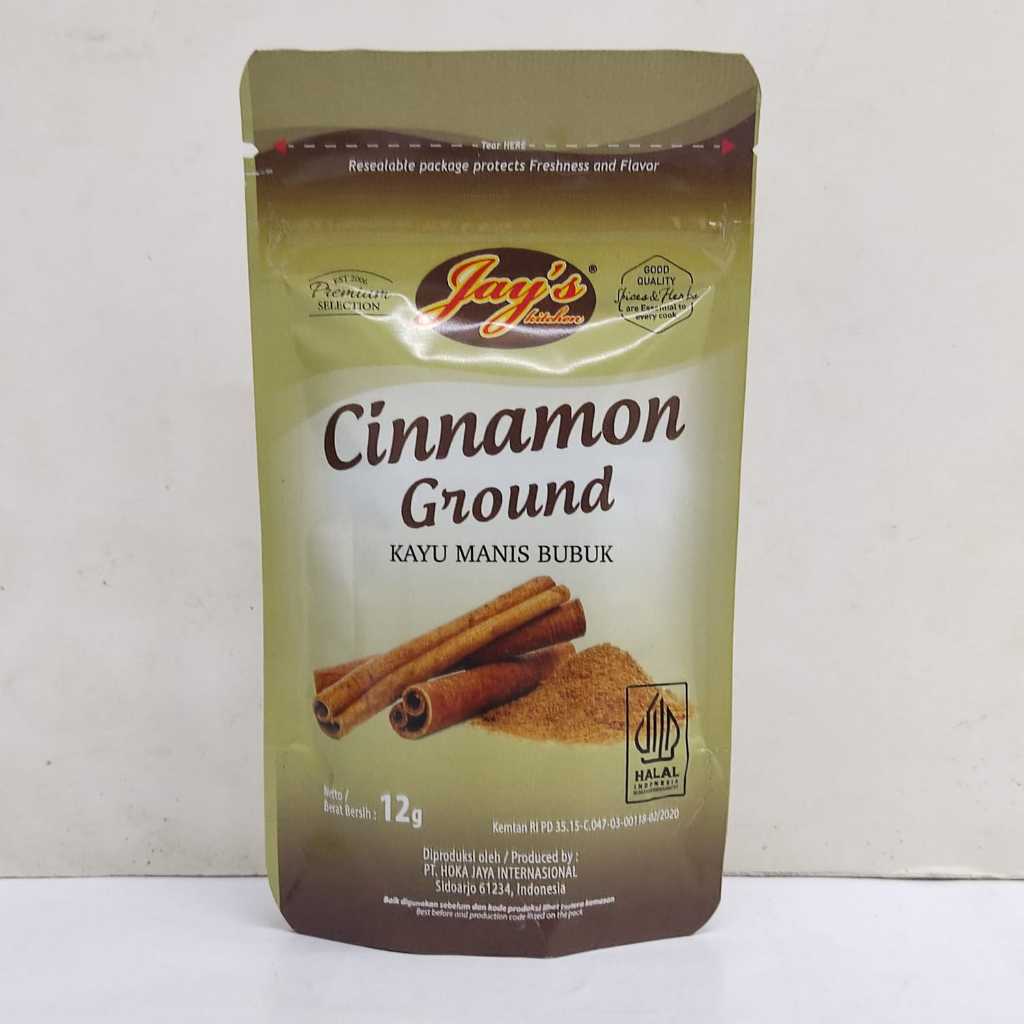 Jay’s Cinnamon Ground 12g adalah bubuk kayu manis berkualitas tinggi yang dikemas dalam kantong praktis berukuran 12 gram. Produk ini cocok digunakan untuk menambah cita rasa pada berbagai hidangan, seperti kue, minuman, atau masakan lainnya