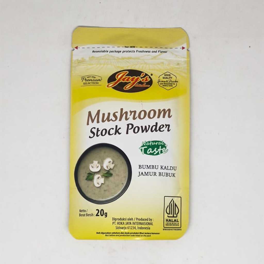 Kaldu jamur bubuk dari Jay’s Kitchen yang terbuat dari ekstrak jamur dan rempah-rempah pilihan. Digunakan sebagai penyedap rasa alami pada berbagai masakan. Tanpa tambahan MSG, cocok untuk vegetarian dan lebih sehat untuk dikonsumsi sehari-hari.