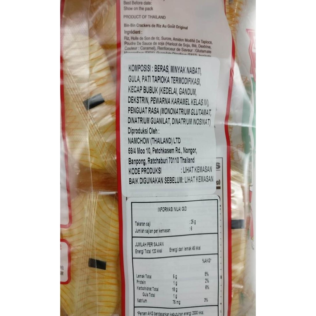 Tanpa MSG dan Pengawet sehingga aman untuk dikonsumsi semua kalangan. Bin Bin Cracker juga dibuat dengan cara dipanggang bukan digoreng untuk lebih memberikan rasa crunchy.