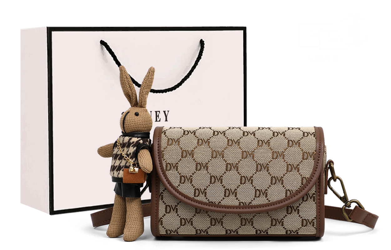 Тканевая наплечная сумка через плечо Античный цветочный принт Маленькая квадратная сумка Маленький размер Женская Кофейная Лоза