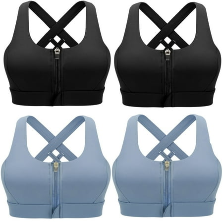 Sport Bra Zipper Front High Impact Sports Bras for Women Large Bust - Shockproof Fitness Gym Yoga Workout Running Push Up Plus Size Bra S-3XL(4-Packs)
