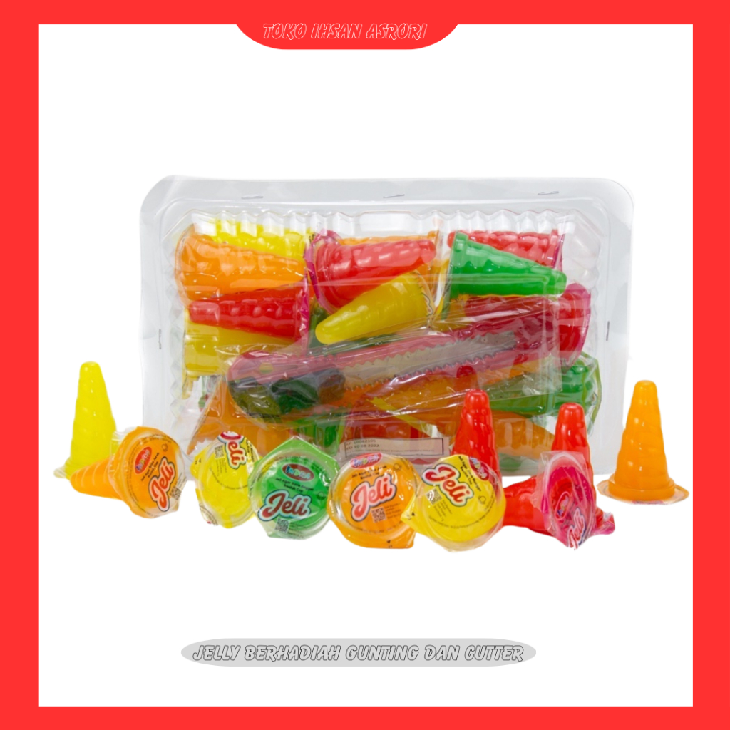 jelly berhadiah catter / pisau dengan isi 1 pak isi 30 picis didalam 1pak dengan rasa campuran