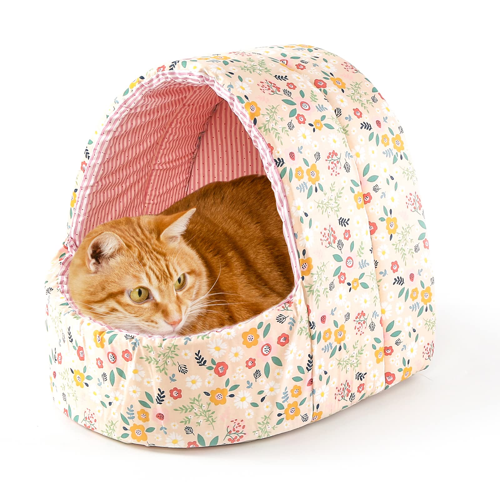 JEMA Pet для маленьких и средних собак и с и Пушистая собака Цветочный бежевый Куполообразная кровать/Кровать для кошек, 100% хлопок, Кошки, Подушка, Круглогодичный домик, Весна,