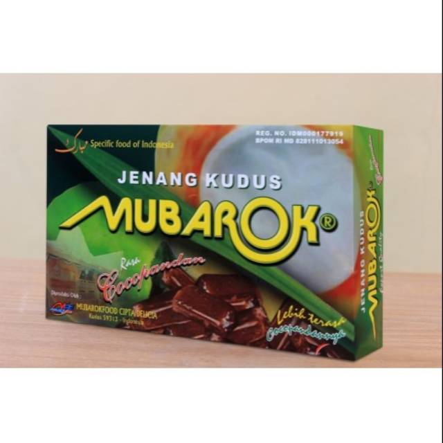 Jenang Dodol Mubarok Rasa Cocopandan merupakan oleh oleh khas Kudus dengan rasa Cocopandan khas jenang Kudus. Diproduksi dari campuran tepung beras, gula pasir, gula kelapa, santan dan bahan lainnya yang berkualitas sehingga menciptakan rasa yang manis legit dan bercita rasa tinggi