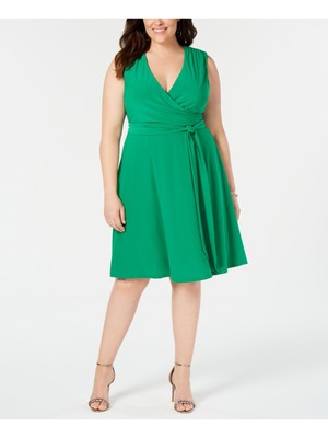 JESSICA HOWARD Женское зеленое коктейльное платье без рукавов до колен с запахом плюс, Зеленый