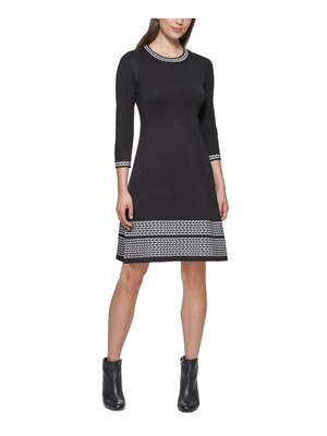 JESSICA HOWARD Женское черное вязаное платье-свитер с рукавами 3/4 Petites, Черный