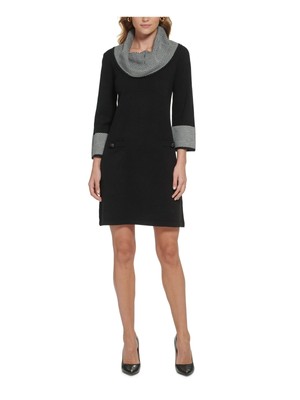 JESSICA HOWARD Женское черное платье с высоким воротником выше колена и рукавом 3/4, Черный