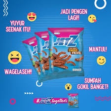 JetZ adalah snack yang terbuat dari bahan dasar tapioka dan terigu. Tersedia dalam empat varian yang menggoda yaitu rasa Ayam Bumbu Mamamia, Bumbu Paprika, Choco Berry dan Chocolate Fiesta, JetZ tetap renyah dan asyik dinikmati di manapun dan dalam suasana apapun.