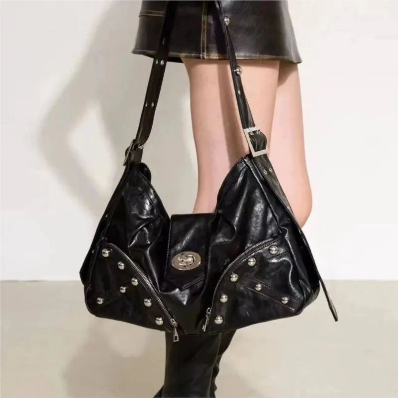 JIAERDI популярная черная большая сумка с шипами для девочек, женские плиссированные текстурированные кожаные сумки на плечо, женская ретро Y2k, эстетичная сумка через плечо