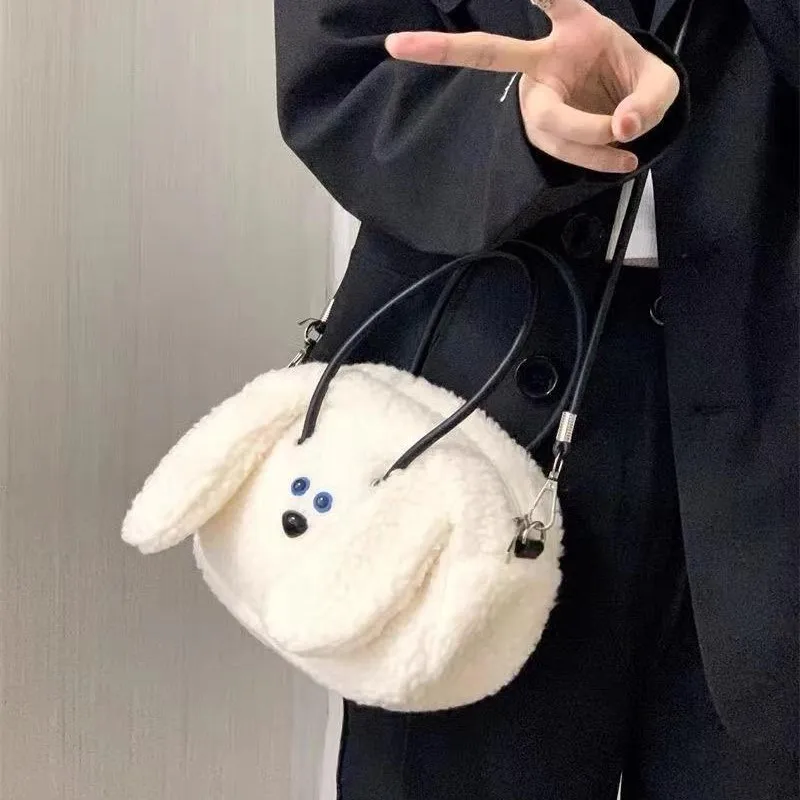 JIAERDI японская милая сумка для щенков, женская белая плюшевая мягкая сумка на плечо большой вместимости, женская забавная универсальная сумка через плечо 2025