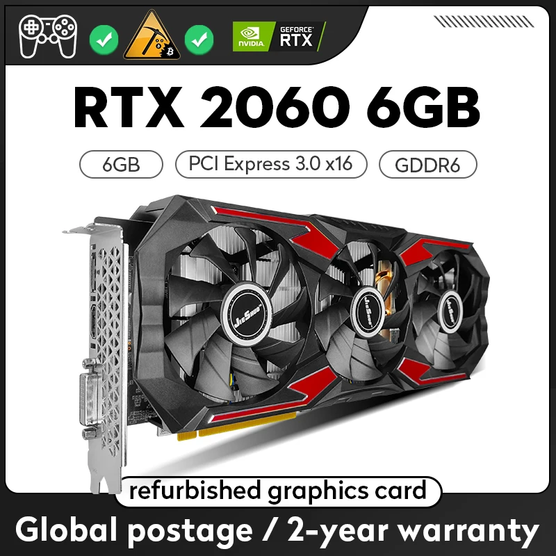 JIESHUO GeForce RTX2060 6 ГБ GDDR6 2060 бит двухвентиляторное охлаждение, трехвентиляторная видеокарта NVIDIA RTX 6G для компьютера!