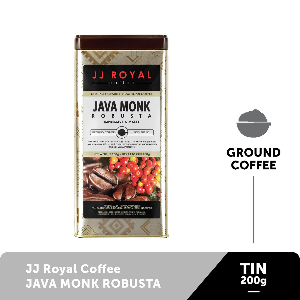 JJ Royal Coffee Java Monk Robusta Ground Tin 200g (bubuk)