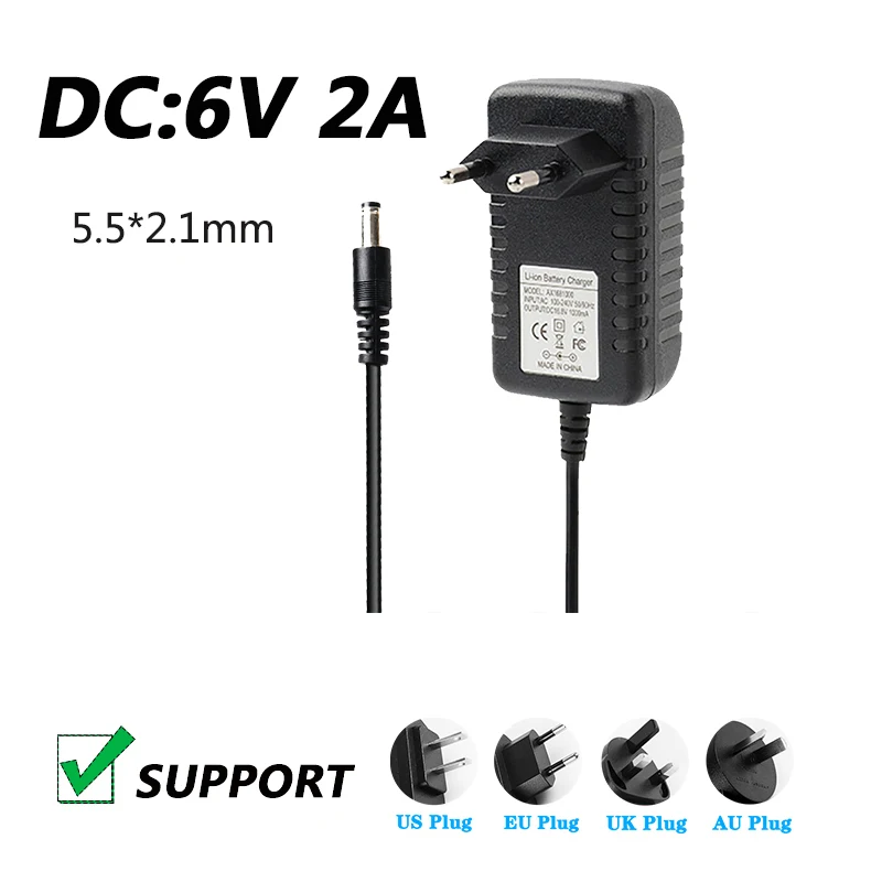 Видеорегистратор постоянного тока 6 В 2 А, светодиодный импульсный адаптер питания, массажное кресло, вентилятор, двигатель, универсальное зарядное устройство, британская вилка, вилка AU 5,5*2,1 мм