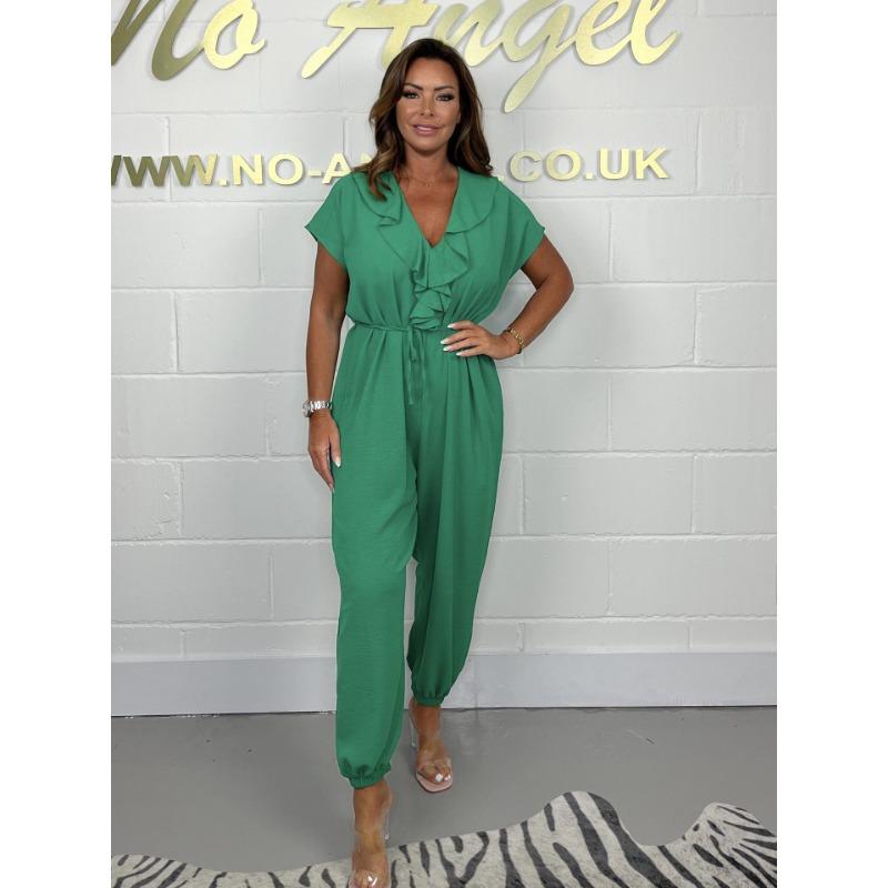 JKASHDK Женская мода Повседневная Летняя Весна Однотонный Принт Короткий Рукав Средняя Талия Брюки Комбинезоны и Ромперы M зелёный