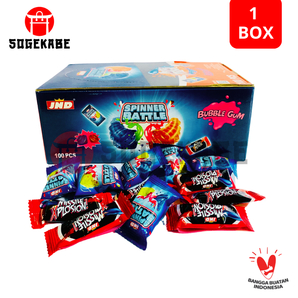 Permen karet aneka rasa buah yang berbentuk spinner ( gasing ) dan missile (rudal). Lucu dan unik.