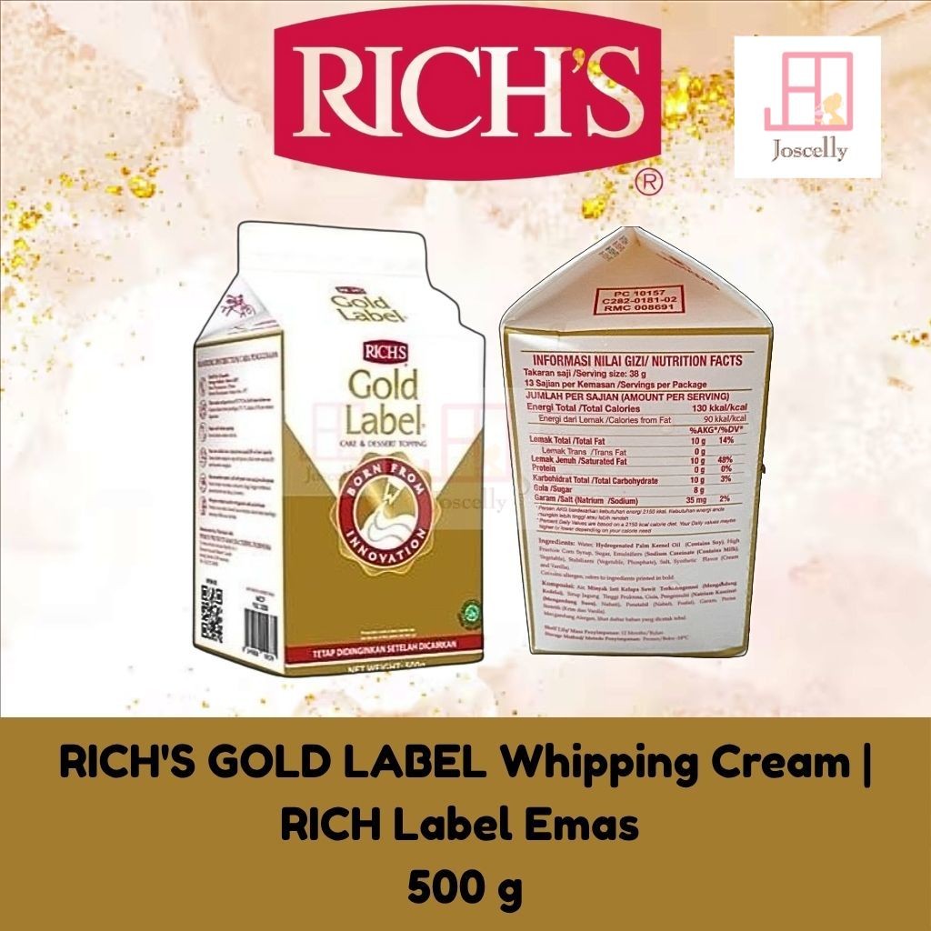 JOSCELLY.ID RICH'S GOLD LABEL Whipping Cream | RICH Label Emas Topping untuk Kue dan Dessert 500 gr