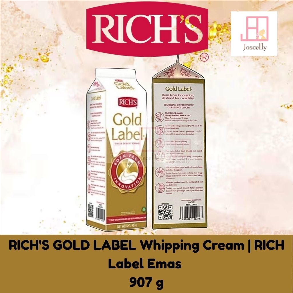 JOSCELLY.ID RICH'S GOLD LABEL Whipping Cream | RICH Label Emas Topping untuk Kue dan Dessert 907 gr