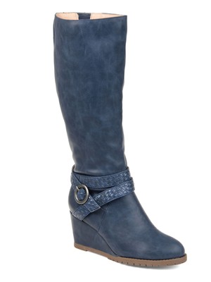 JOURNEE COLLECTION Женские синие ботильоны на танкетке Garin с миндалевидным носком, Синий, GARIN-BLU-085XWC