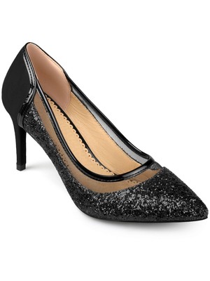 JOURNEE COLLECTION Женские черные сетчатые туфли-лодочки без шнуровки Kalani с острым носком на шпильке, Черный, KALANI-HEEL