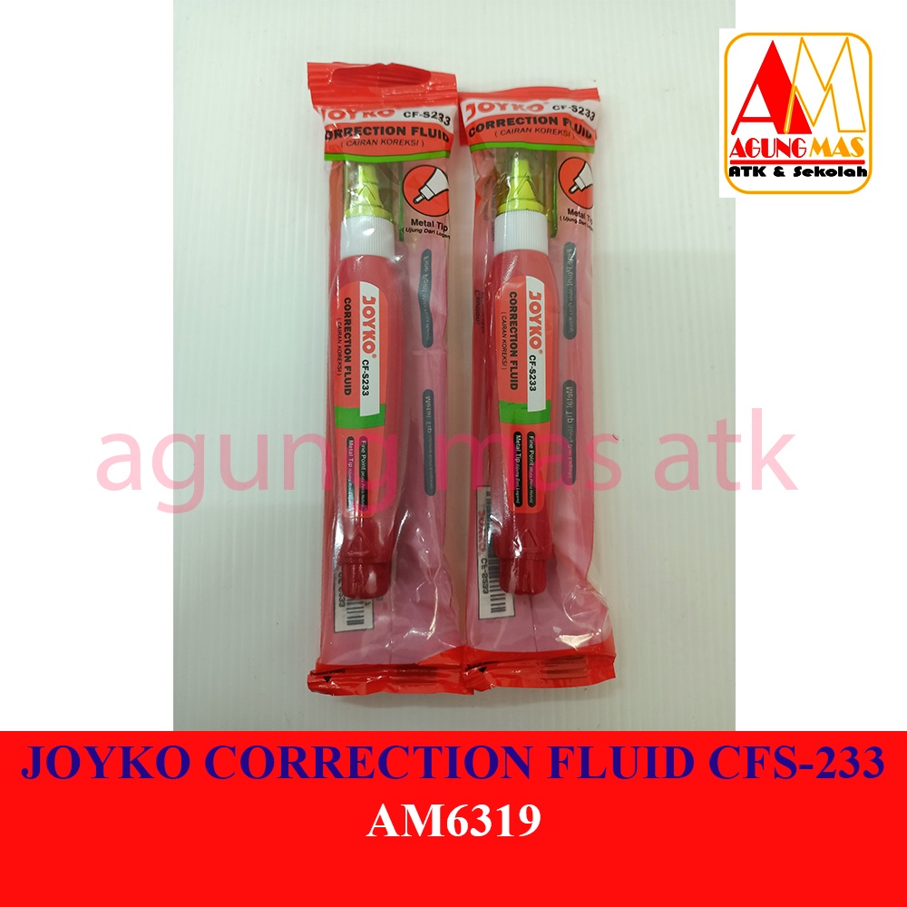Correction Fluid Koreksi Joyko CFS-233, Ukuran Produk : Panjang 12.6 cm x Diameter 1.7 cm, Metal Tip ( Ujung Logam ), Fine Point ( Mata Pena Halus ), Tipe : Cairan, Warna : Merah kombinasi Hijau