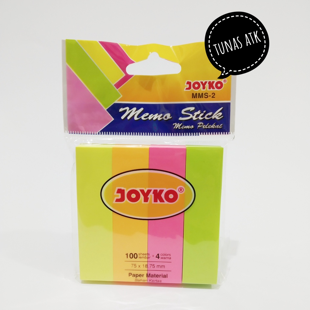 Joyko Memo Stick MMS-2 merupakan kertas warna-warni untuk menulis sebuah catatan kecil yang dapat ditempel di kertas maupun permukaan vertikal seperti kaca dinding dan papan tulis putih.