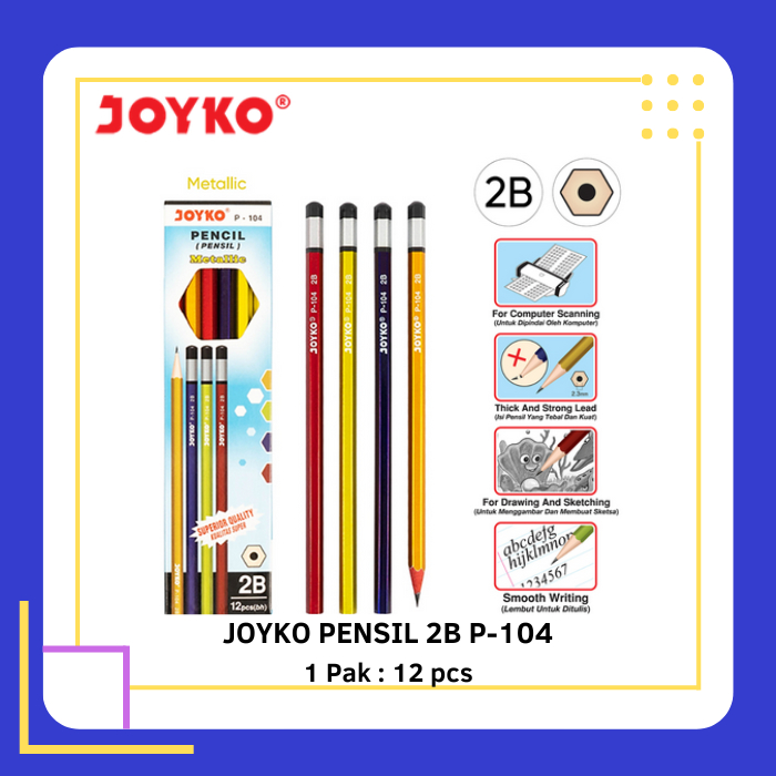 JOYKO Pensil 2B P-104 Metallic 1 Pak - 12 Pcs