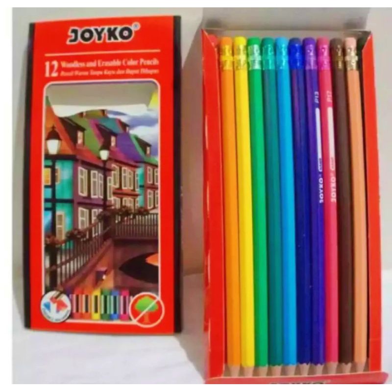 Pensil warna merek JOYKO dan ada Penghapusan nya 12 warna. cocok untuk Anak yang suka mewarnai