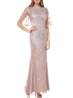 JS COLLECTION Женское светло-розовое вечернее платье макси с короткими рукавами, Light pink