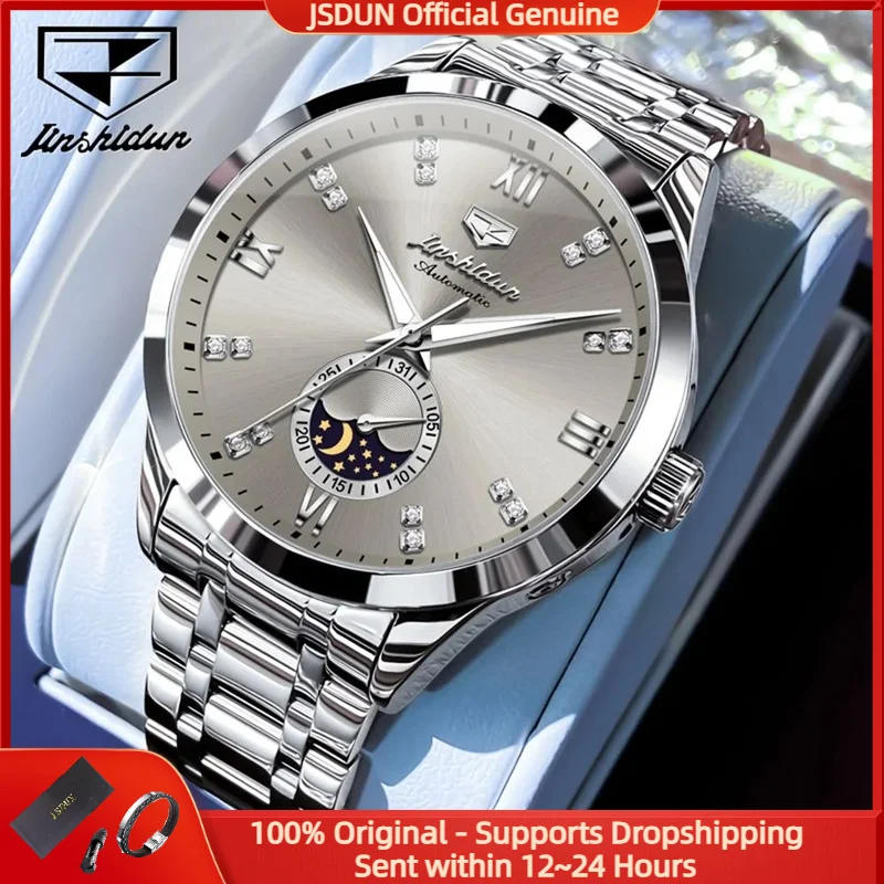 JSDUN 8969, оригинальные брендовые мужские часы, роскошные деловые автоматические механические часы, модные водонепроницаемые мужские часы с фазой Луны