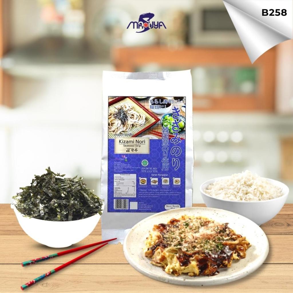 JSF Kizami Nori 20 gr adalah nori yang dipotong-potong kecil (kira-kira 2mm lebar) dan sering digunakan sebagai taburan atau hiasan pada hidangan seperti ramen, nasi, atau bowl. Ini memberikan rasa umami dan tekstur renyah yang unik. Nori ini juga bisa digunakan sebagai pelengkap hidangan lain, seperti salad atau mi.