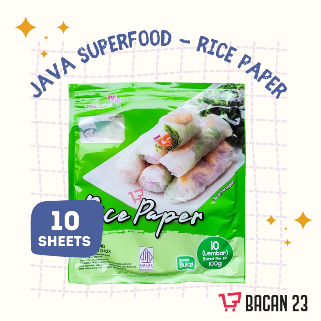 Rice Paper HALAL dari Javasuperfood adalah sejenis kulit lumpia yang terbuat dari tepung beras. Rice paper ini digunakan dengan cara dicelupkan atau diolesi air matang hingga menjadi lembut. Rice paper dapat diisi dengan berbagai bahan segar seperti sayuran, ayam, udang, ikan, atau daging untuk membuat spring roll.