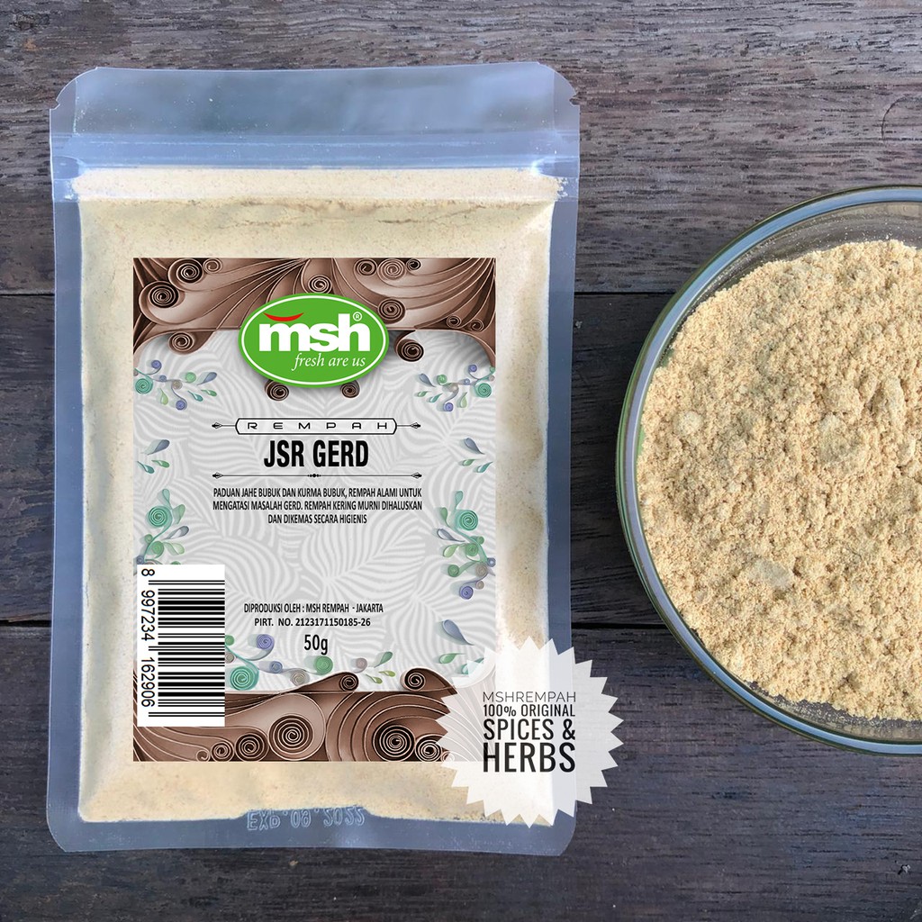 JSR Gerd merupakan perpaduan rempah alami jahe bubuk dan kurma bubuk. Paduan rempah yang merupakan Jurus Sehat Rasulullah atau JSR ini bermanfaat untuk mengatasi masalah gerd.