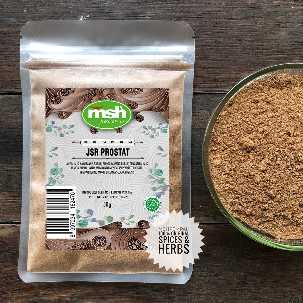 JSR Prostat merupakan perpaduan jahe bubuk, kayu manis bubuk, bunga lawang bubuk,lemon bubuk dan cengkeh bubuk . Paduan rempah yang merupakan Jurus Sehat Rasulullah atau JSR ini bermanfaat untuk membantu mengatasi penyakit prostat