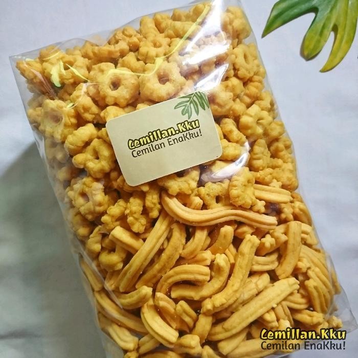 Kembang Sakura dan Cipiran Kuning Lumba-lumba snack jadul dengan rasa gurih bawang yang renyah.