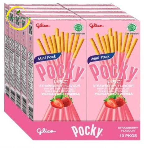 Glico Pocky Biskuit Stik Bersalut Gula Rasa Stroberi 21 gramKemasan mini pack isi 10 pack1 karton isi 12 pack x 10