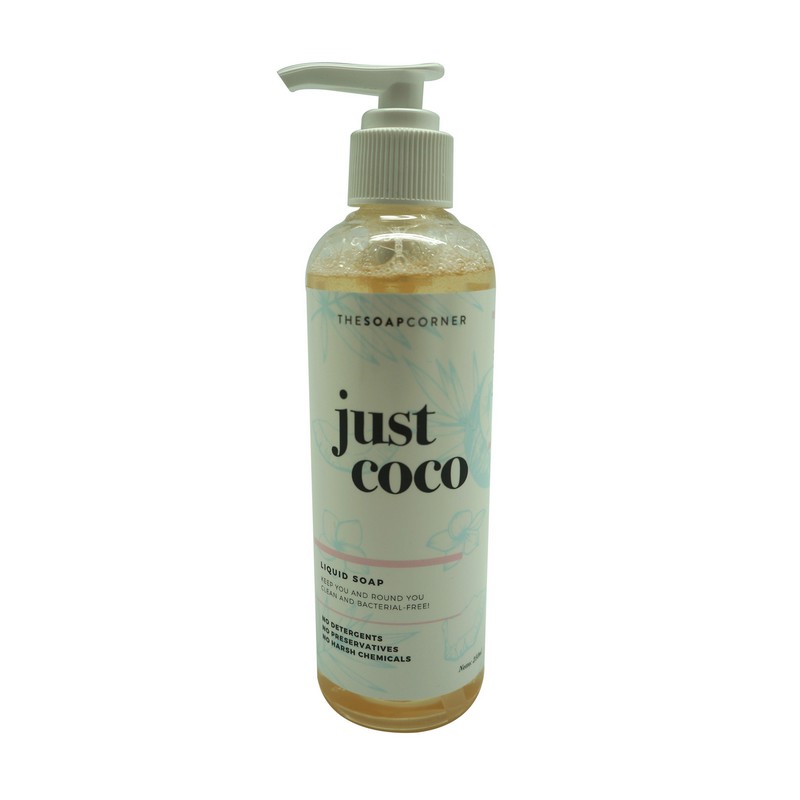 Just Coco Liquid Soap terbuat dari 100% Minyak Kelapa. Sabun ini memiliki busa yang lebih banyak dibanding sabun liquid soap lainnya dan memiliki efek membersihkan yang sangat bagus. Oleh karena itu Just Coco Liquid Soap juga dapat untuk membersihkan buah, sayur bahkan untuk mencuci piring dan baju,