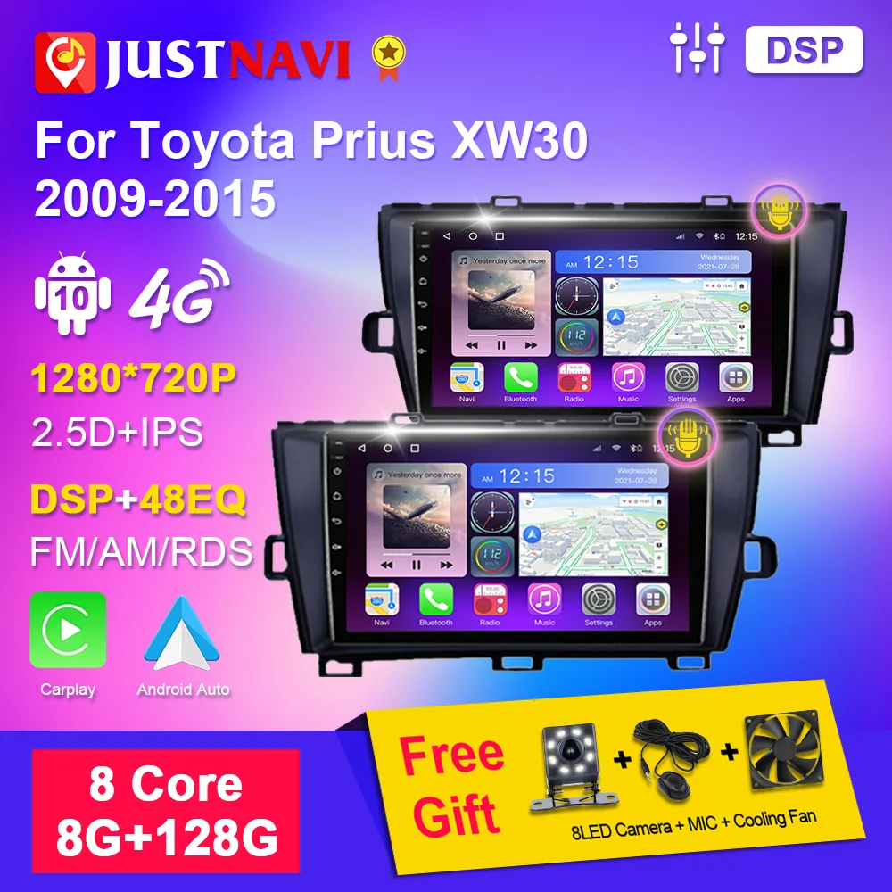 JUSTNAVI Android мультимедиа для Toyota Prius XW30 2009-2015 автомобильное радио стерео DSP IPS Видео Аудио плеер навигация GPS Carplay