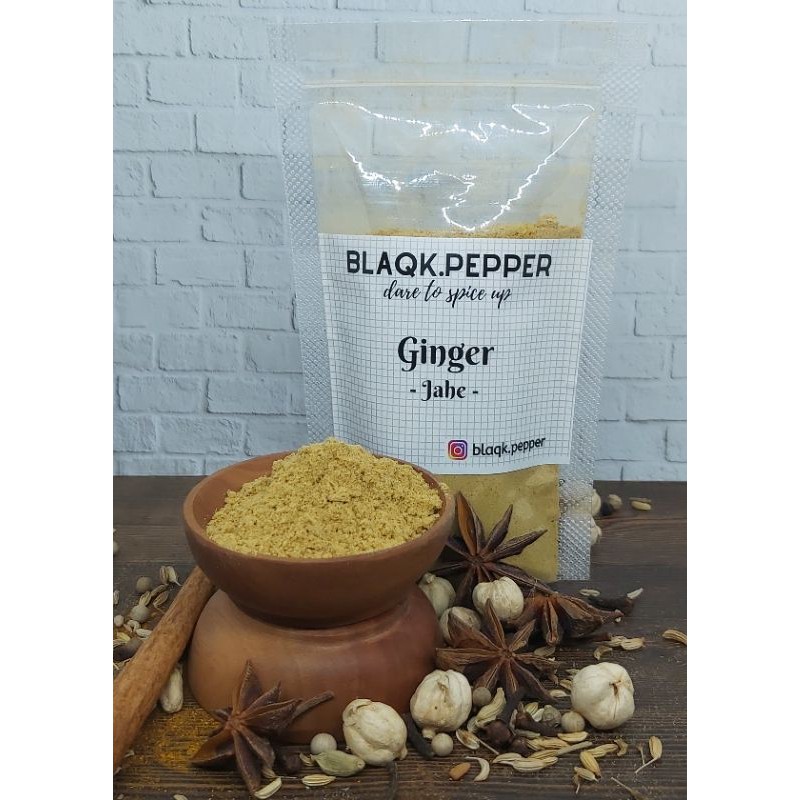 Jahe bubuk terbuat dari jahe asli tanpa campuran bahan lain. Bebas bahan kimia atau pengawet.