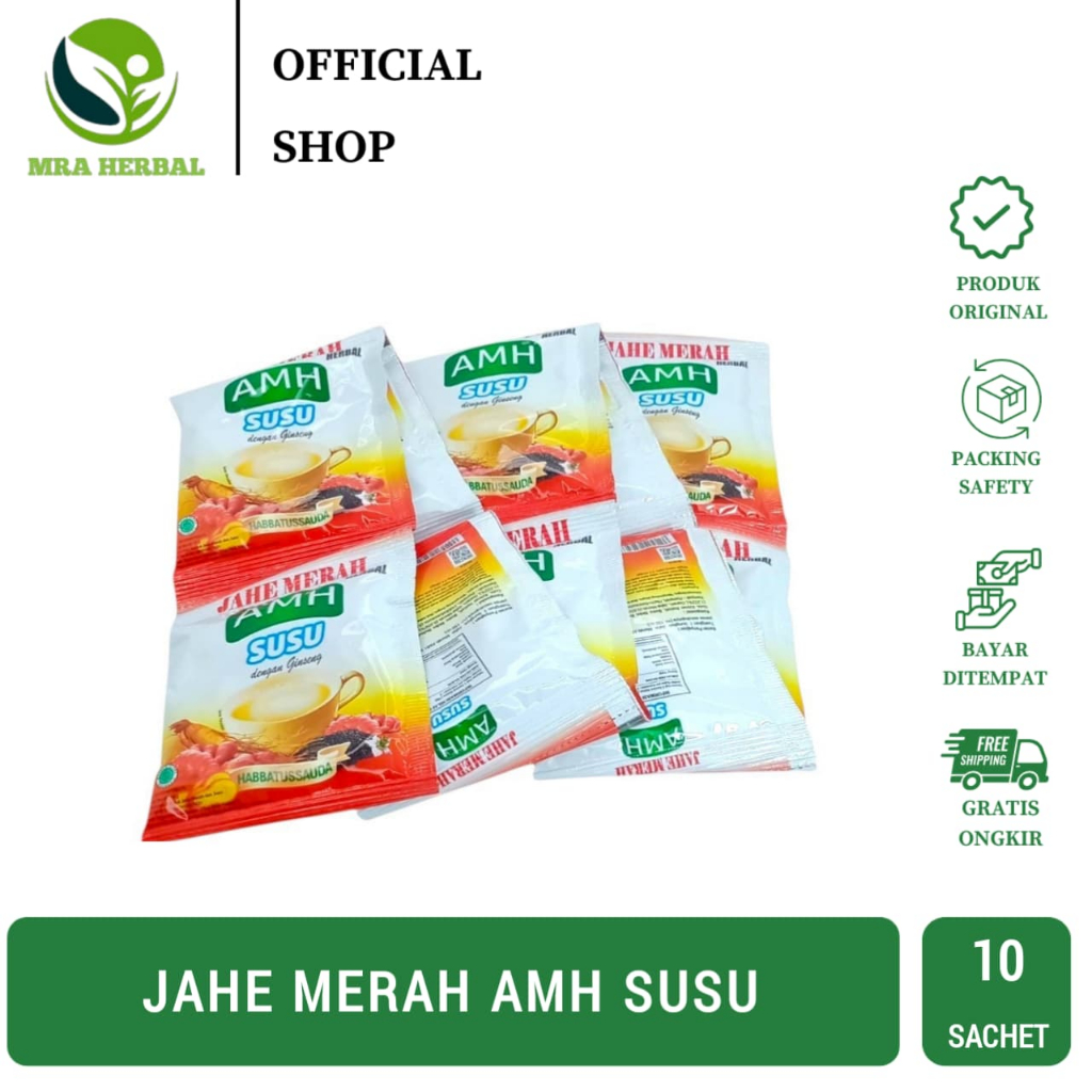 Jahe merah herbal AMH susu dengan ginseng adalah minuman herbal instant yang lezat dan nikmat rasanya. Selain jahe, minuman ini juga mengandung susu, krimer, Habbatussauda ginseng dan sereh.