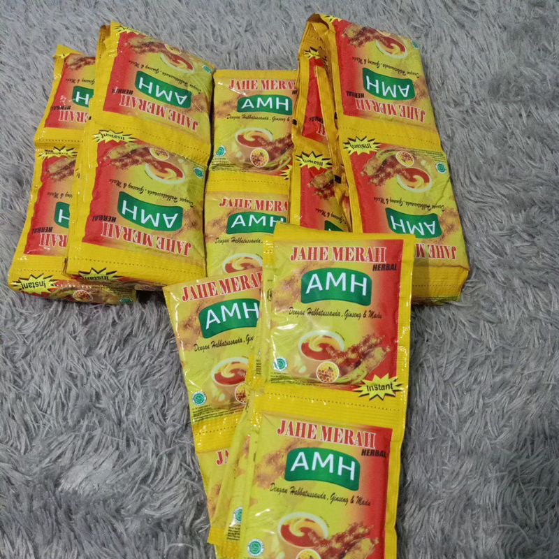Jahe merah AMH dengan habbatussauda, ginseng dan madu, 1 renceng 12 sachet