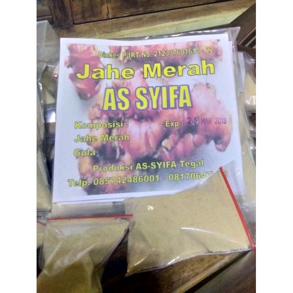 Jahe Merah AS-SYIFA minuman herbal alami yang terbuat dari Jahe Merah yang telah diproses menjadi serbuk atau instan tanpa bahan pengawet