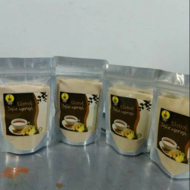 Seduhan jahe merah berbentuk bubuk sehingga cara pakai tinggal seduh saja dengan air. Seduhan jahe merah terdiri dari bahan jahe merah asli dan gula. Dapat pesan per kg.