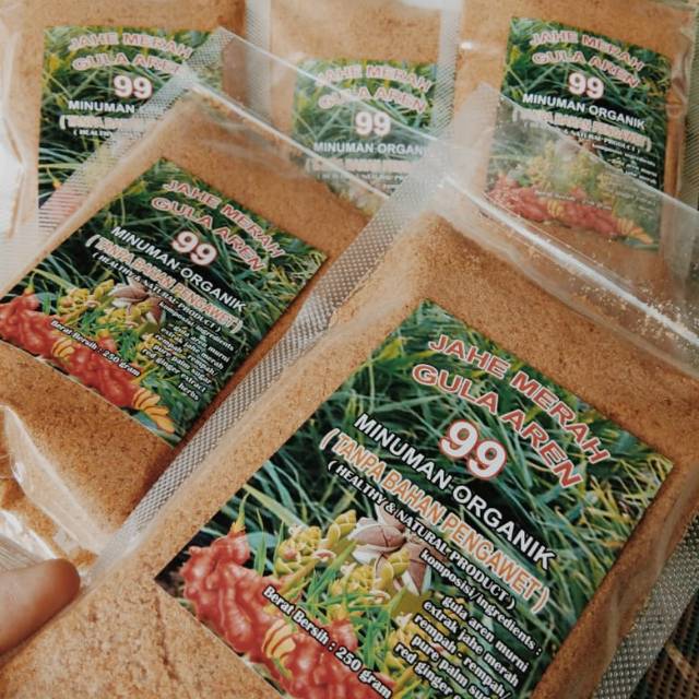 1. Tuangkan bubuk jahe merah+gula aren 2-3 sendok makan