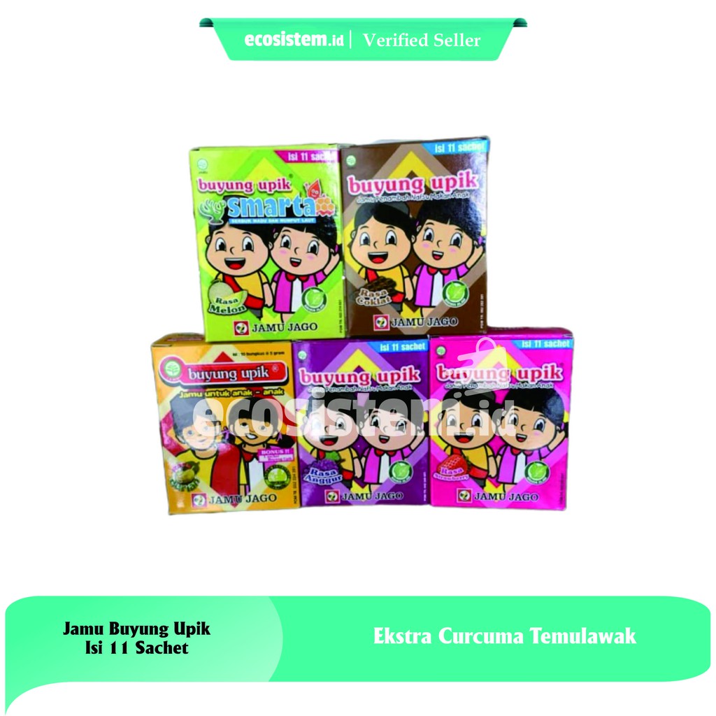 Jamu-jamu Buyung Upik dengan rasa buah segar yang disukai anak-anak khusus diformulasikan dari ekstrak Curcuma Temulawak dan bahan-bahan alami lainnya berkhasiat untuk memelihara kesehatan membantu memperbaiki nafsu makan secara tradisional digunakan pada penderita cacingan.