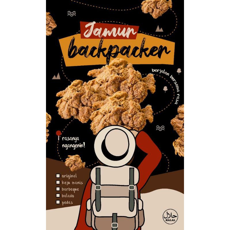 Jamur backpacker adalah jamur krispy yang terbuat dari jamur tiram pilihan. Cocok untuk anda yang senang bepergian, atau di rumah aja sambil nemenin nonton dan aktivitas lainnya.