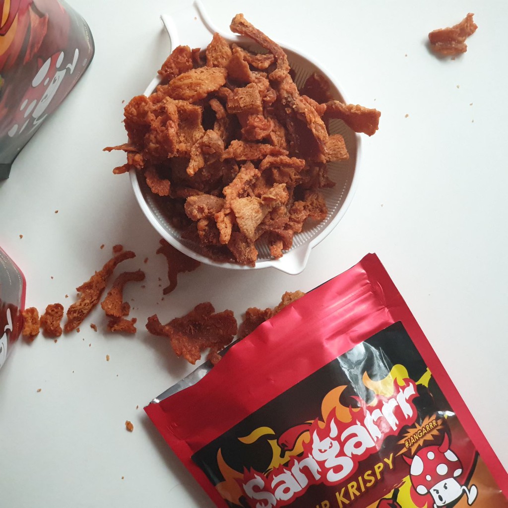 Dengan taburan bubuk cabai pilihan 100% cabai asli, bikin keripik jadi tambah Muantaab!