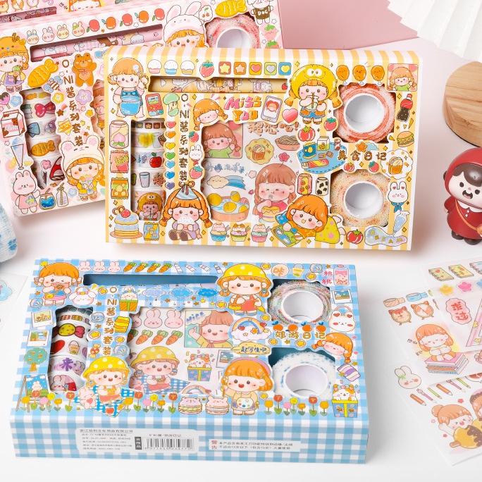 Jangan Ragu Order Stiker 1 Set Box Karakter Lucu + Roll Stiker + Pulpen Cutter 9x9 / Stiker super Cute...