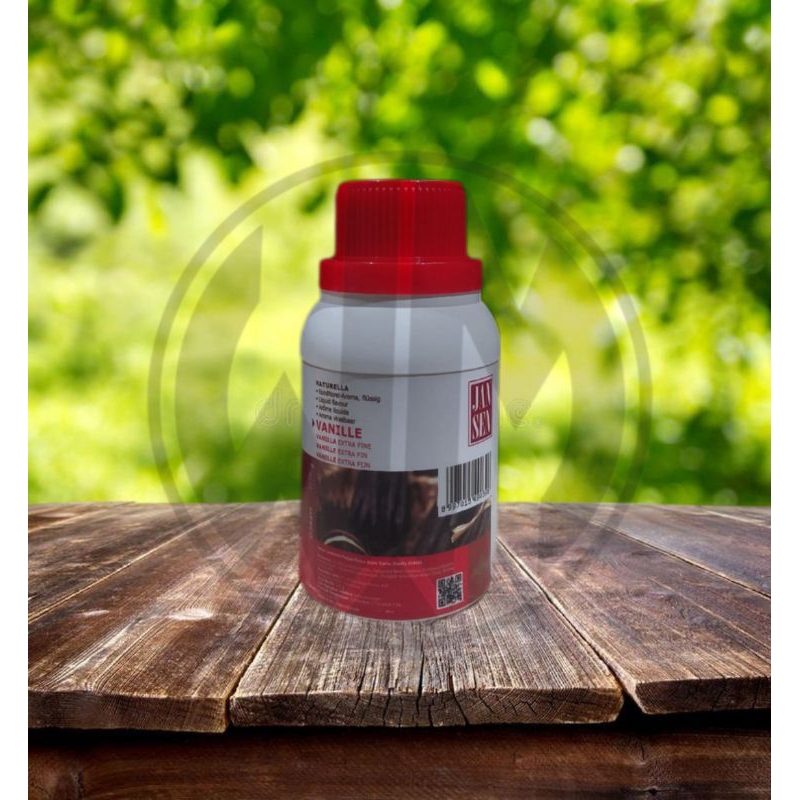 produk ekstrak vanilla berkualitas premium yang berasal dari German. Jansen Vanilla Ekstrak merupakan salah satu bentuk vanilla olahan yang lebih mudah dan luas penggunaannya. Dengan tekstur yang agak kental, berwarna cokelat, dan aroma vanilla yang khas,digunakan untuk kebutuhan pembuatan kue, desserts, es krim, bahan minuman, custard dan lain-lain.